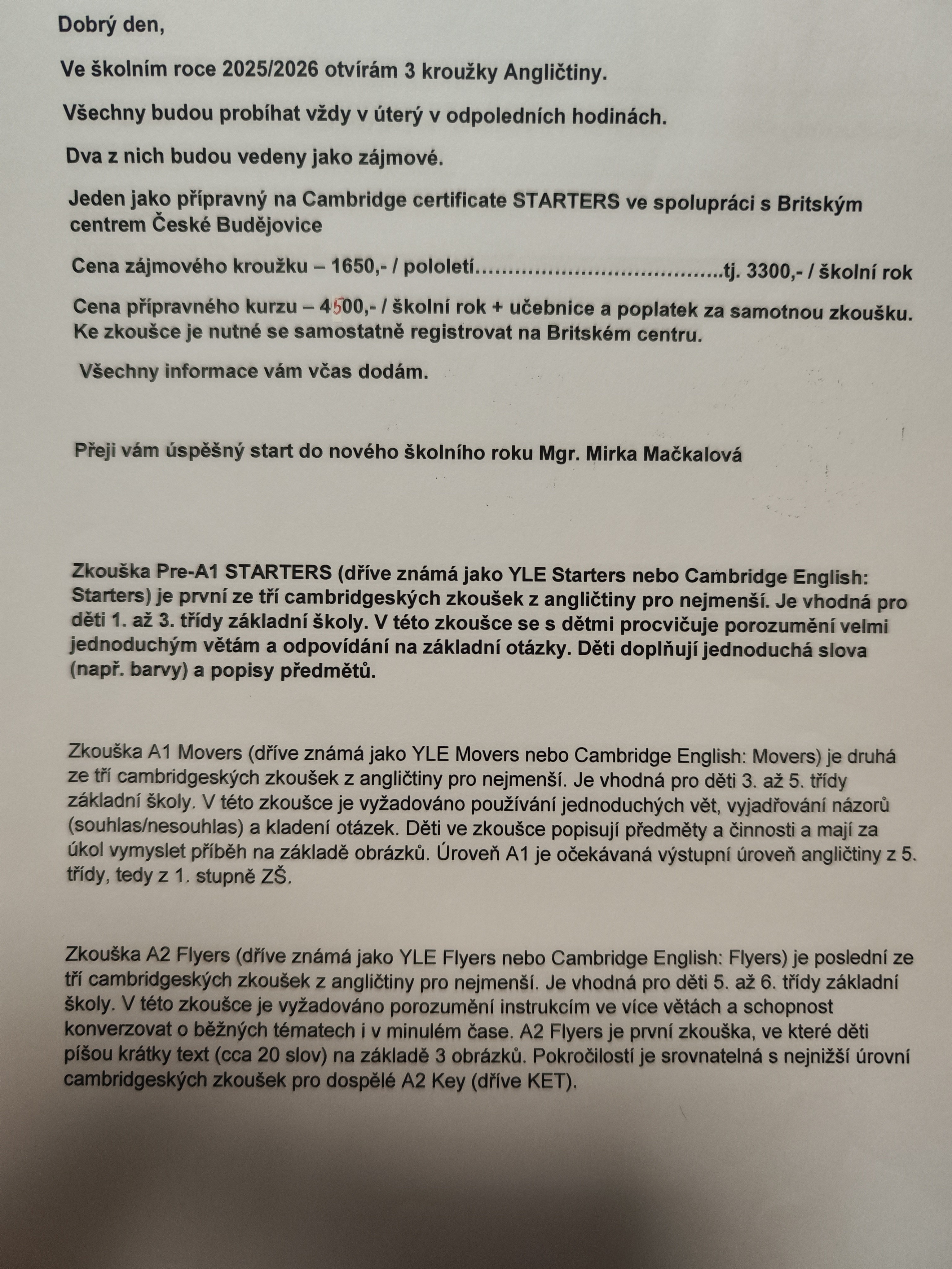 Pokud si nepřejete zveřejňovat jméno svého dítěte, přihlaste si termín a čas telefonicky: 604 875 969, 702 037 367.