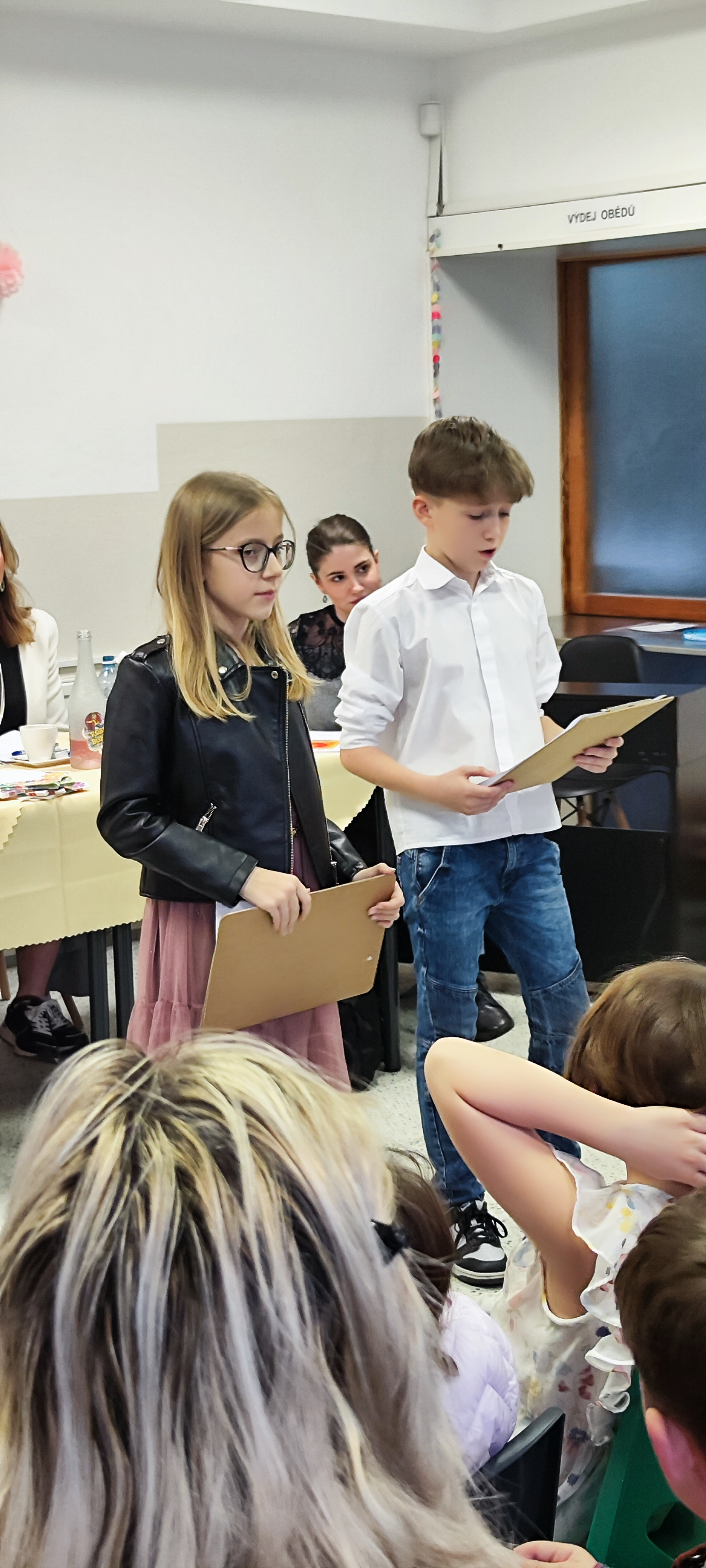 Za naší školu nás reprezentovaly tyto děti: 1. třída - Gábinka Kettnerová, 2. třída - Meda Hřídelová, 3. třída Isabelka Malíková, 4. třída Sofia Mia Matos, 5. třída Eliška Kachlarová. Jako moderátoři za pátou třídu: Matěj Souček a Kačka Kolouchová.
