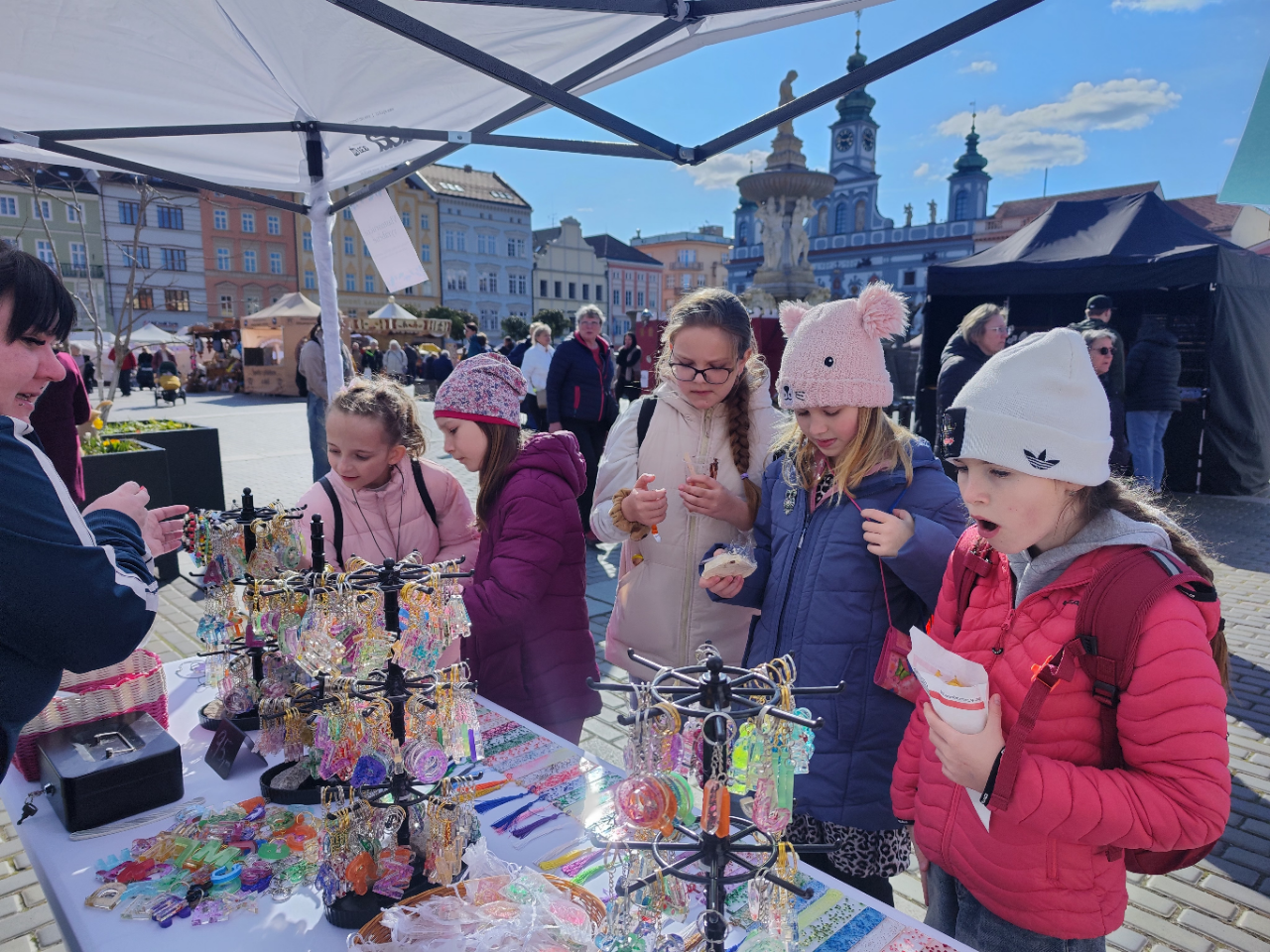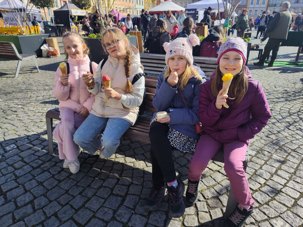 Kroužek tvoření a šití máme během roku i tématický. A tak volba jít se podívat na jarní trhy do ČB byla pro nás krásným zážitkem. Nákupy, papání, zmrzlina zakončené Velikonočním tvořením a nadílkou.